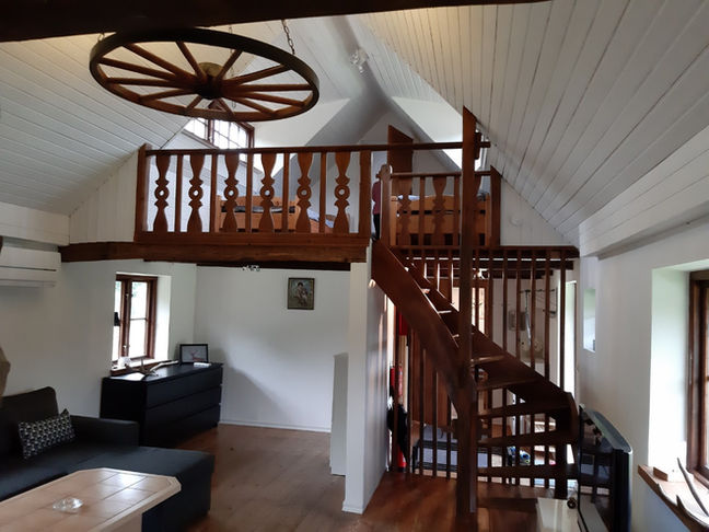 Övernattningsvåningen: Detta byggde vi 2018 med nytt kök, badrum och altan ut mot